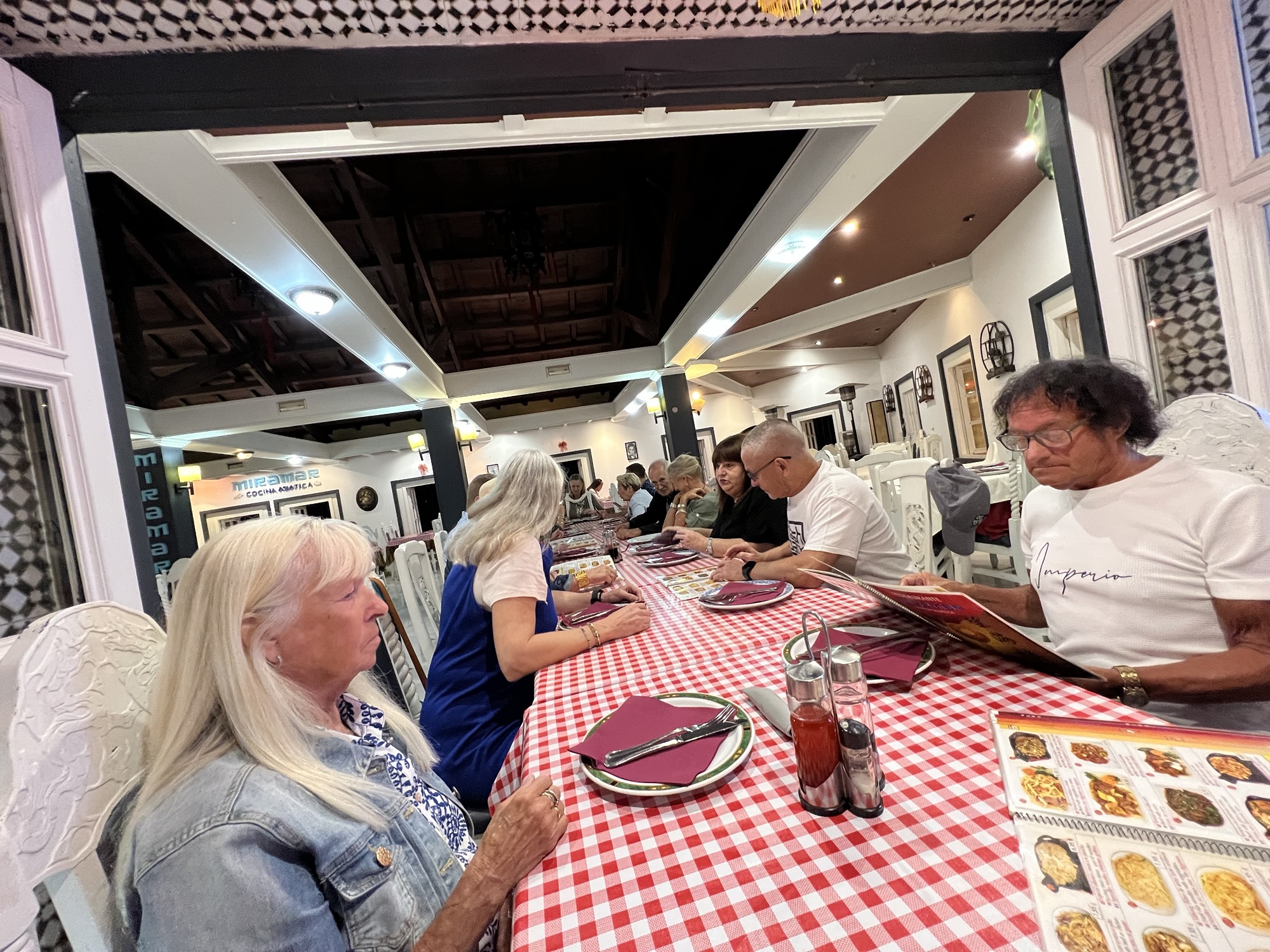 We started over in 20 canas the one next to the lift around 5.30pm for well priced drinks! The staff here are very friendly and id recommend a look for the tapas… the crew rounded up and we headed over to miramar restaurant to our reserved table, quite a big crew so settling some of the crew takes slightly longer we just sat down and enjoyed the show! Finally we got settled and the food and drinks orders started flowing